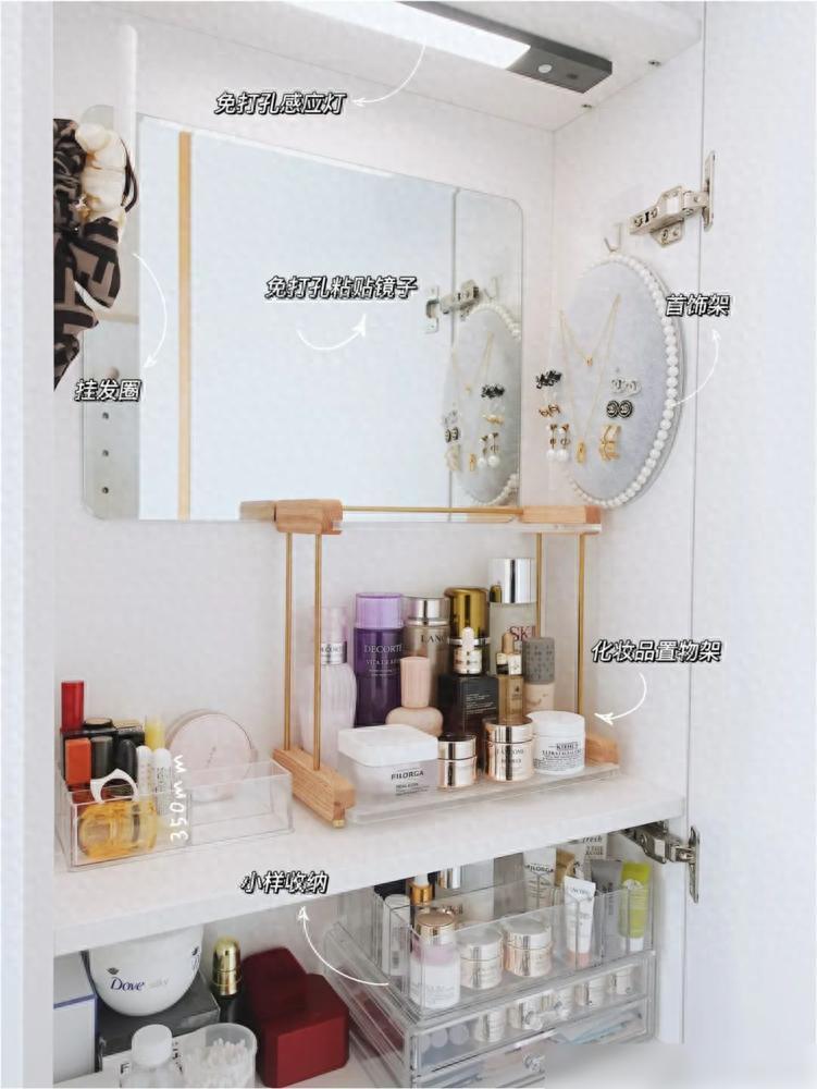 像郭大小姐这样认为化妆对提升自身形象有很大帮助的女孩们,接下来要考虑的就是化妆台的收纳分类设计了。