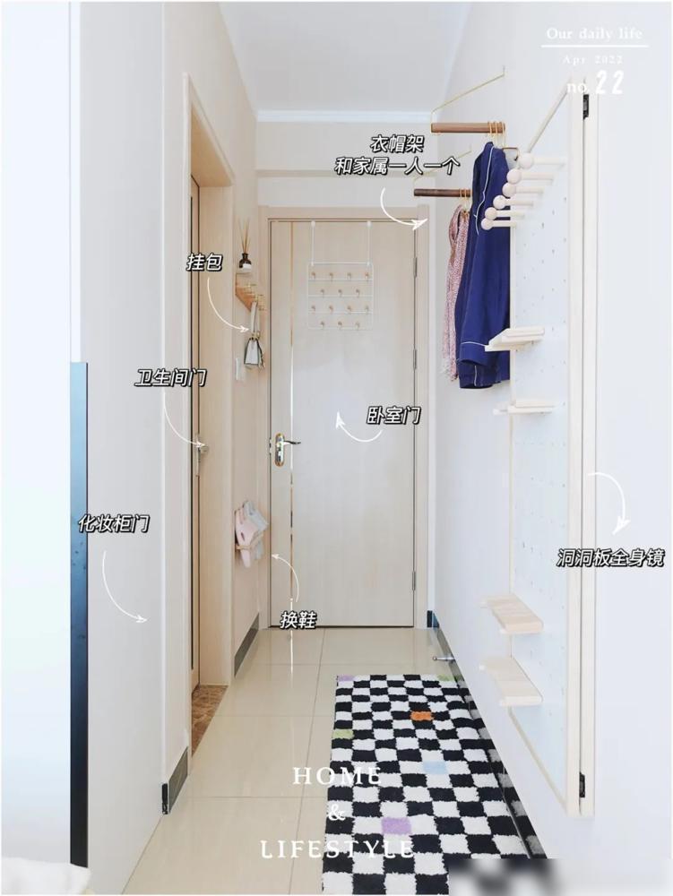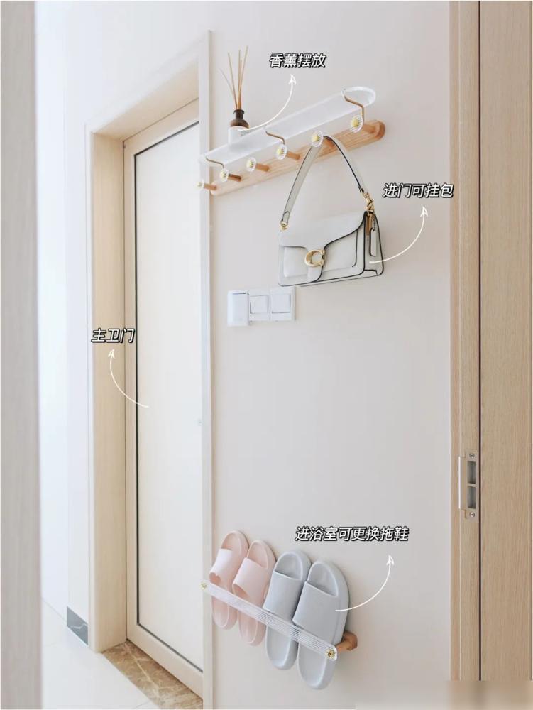 因此,我建议像郭大小姐一样充分利用门后空间,将其打造成衣帽间,用来存放这些配饰类物品,这样就不会影响公共活动区域。