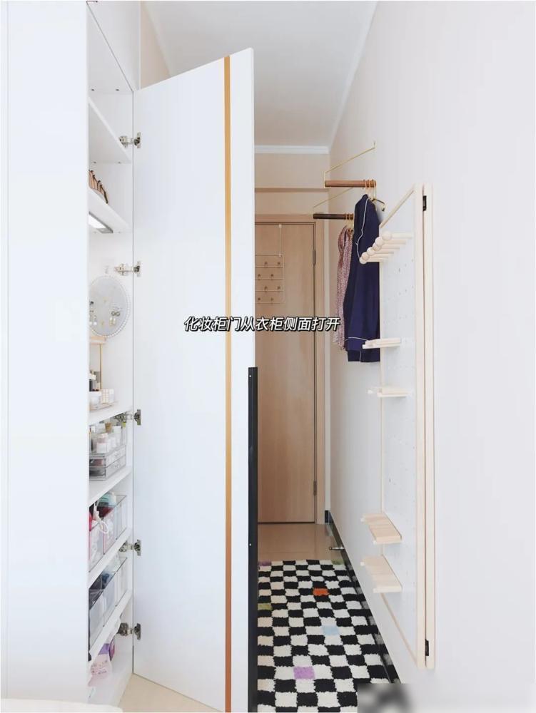 门后衣帽间。对于像郭大小姐这样的上班族而言,每天出门前拿取衣物、配饰等是比较麻烦的事情,所以有些人会选择将这些物品放在卧室门后,方便进出时取用。